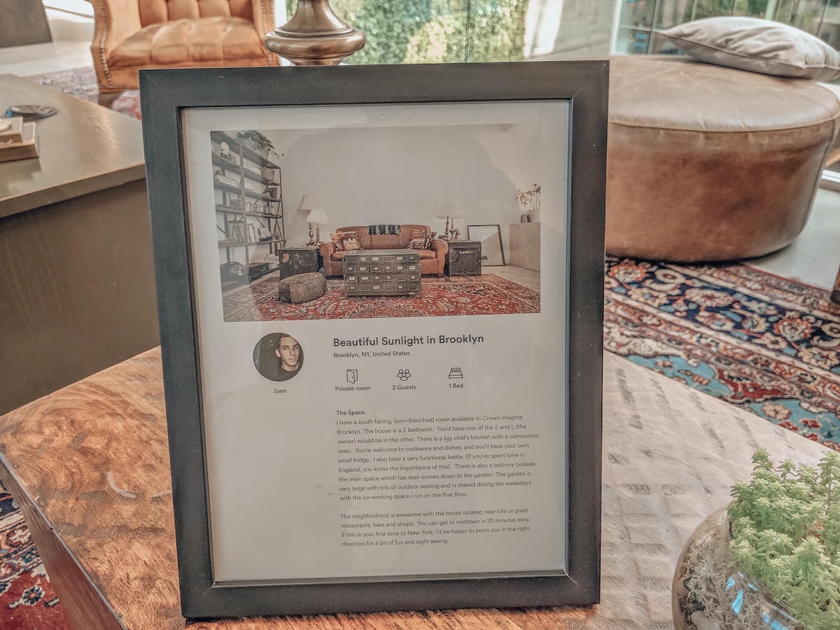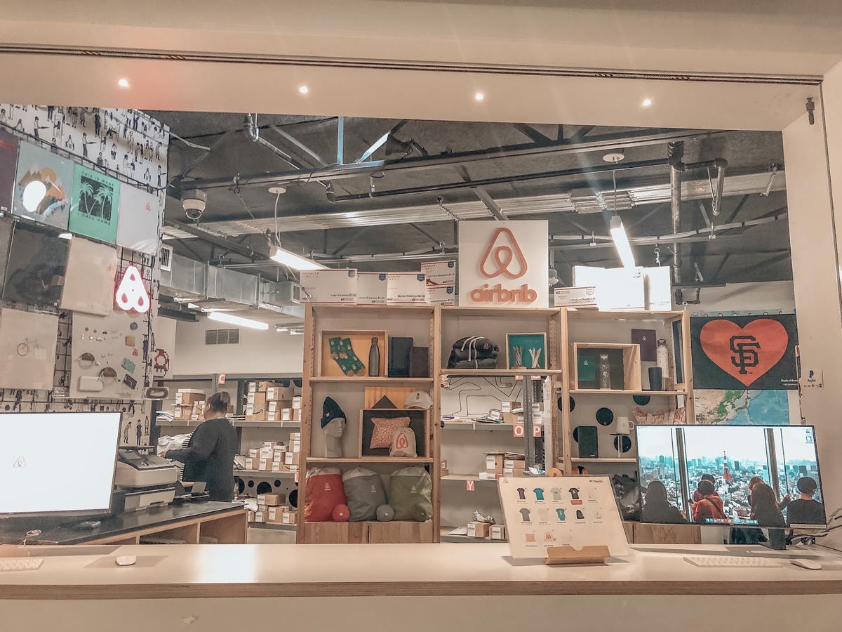 一進去後在櫃台先check in,就會得到訪客名牌貼紙,通常這種都是隨便一個白底黑字加個logo的東西,竟然還有Airbnb 品牌的顏色,可以看出他們對細節的注意 (但名牌上有個不能拍照的圖示,就先不放上來了) 。
