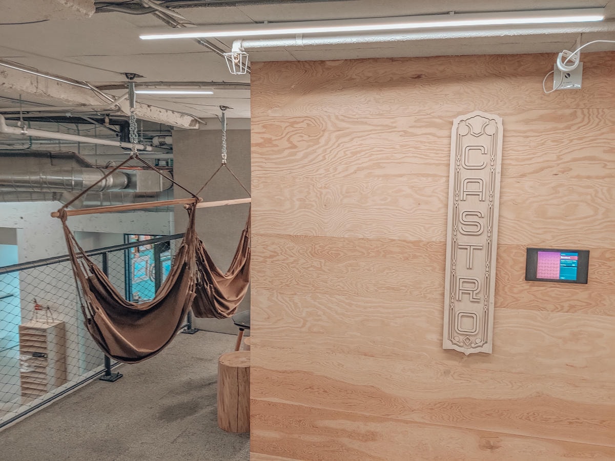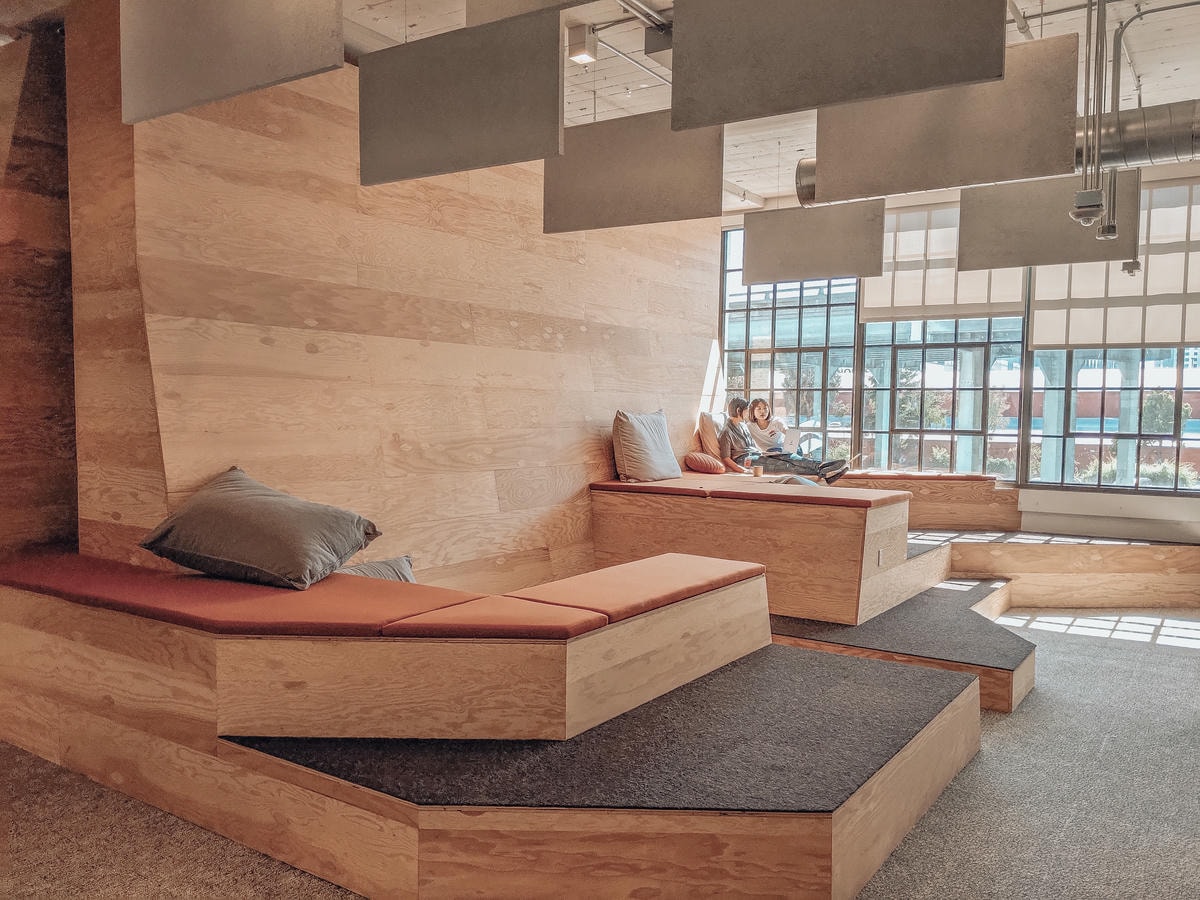 除了一般的工作區域外,這裡真的有各種公共空間,有仿造公園的設計,讓你可以想像自己徜徉在綠地陽光中工作,或是躺在吊床上享受午後自己的獨處時光,還有3D投射的等高線玩沙區、桌球區、3D列印區等等,不管你的興趣是什麼,都可以在忙碌的工作中找到屬於自己的休閒,甚至還有個樹屋是完全複製他們最受歡迎的房源,累了還真的可以進去睡覺,在這裡工作真的會捨不得下班啦哈哈哈!