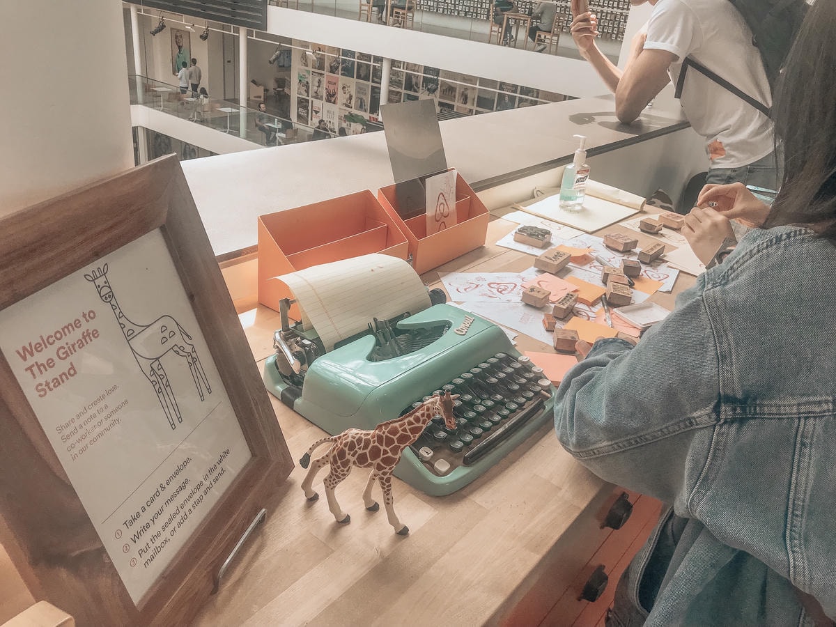 除了這些浮誇好玩的空間外,我最喜歡的是他們把整個品牌的理念都灌輸在各個小擺設中。Be a host 是Airbnb的企業文化,希望所有的員工能像他們的房東一樣願意幫助他人,而我印象最深刻的兩個地方,一個是一個小空間中擺滿了便利貼及旁邊有個小信箱,你可以把你想對同事說的感謝的話匿名寫在便利貼中放進信箱,人資就會幫你送給你同事,一句簡單的稱讚可能成為別人工作很大的動力。另一個是牆壁上貼滿了一堆房東的照片並寫著 “Open your heart and house”,是表揚世界各地的房東,有人願意免費開放自己的住處給難民,相信員工看到這些也會更加堅信自己的工作,對這個世界有正面的貢獻價值。