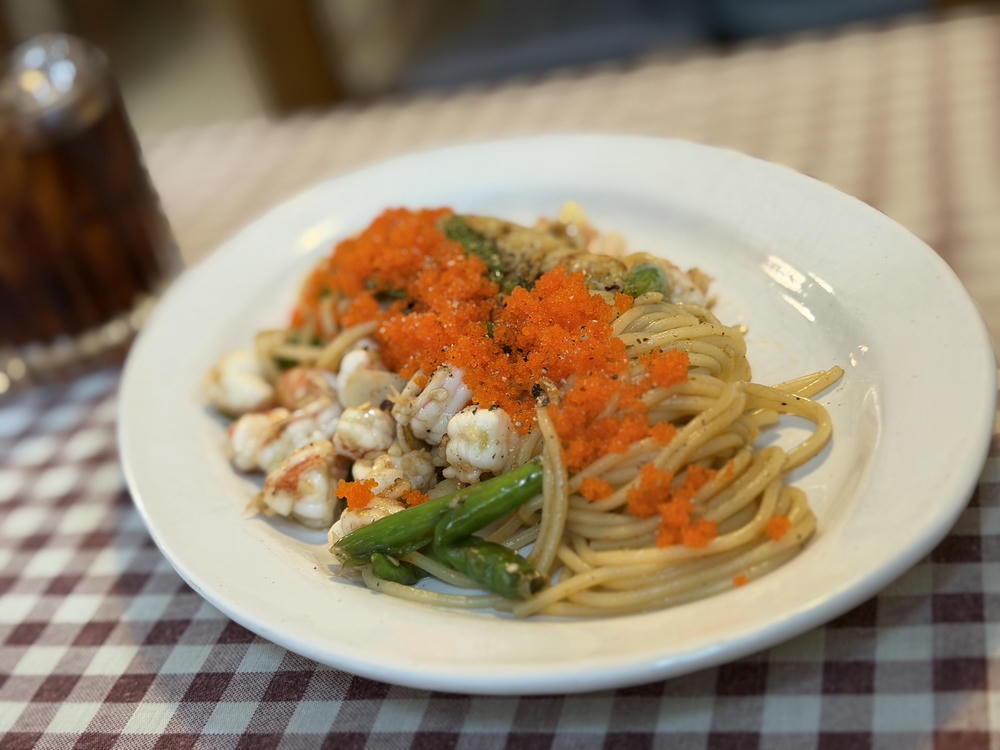 一間氣氛溫馨、融合異國風格、隱藏在巷弄中的小店,適合晚上想找地方吃飯+小酌的你。我們來的時候幾乎都只有當地人,五點多來很幸運坐到最後一個沒預約的位子,所以推薦大家要事先預約!來這必點一秒牛排和辣蝦義大利麵,兩個都好吃到爆,價格也很合理,是下次回清邁想回訪的店家。