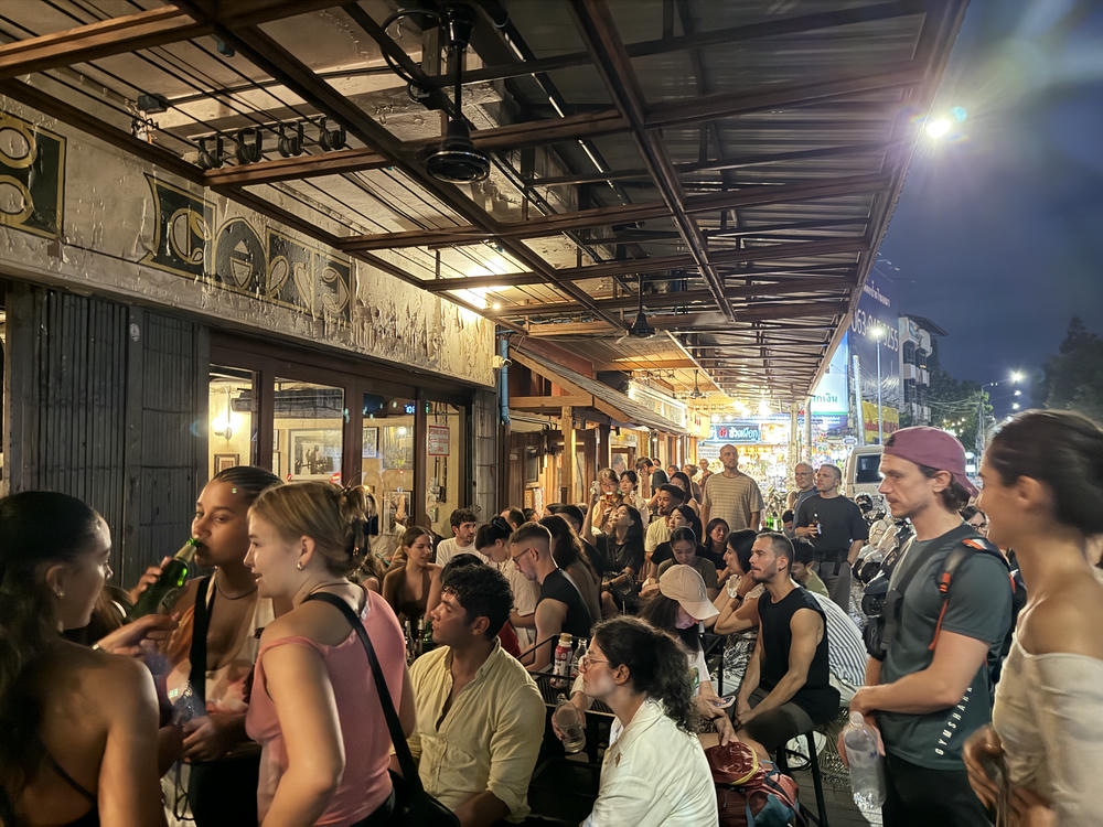 這邊私房推薦二樓有一個小房間裡的位子,可以從上面俯視樂團,且不會有人在旁邊走來走去干擾,是個很舒適的空間!要離去時戶外也已經擠滿人,音樂好聽氣氛又棒,是必訪的清邁酒吧。