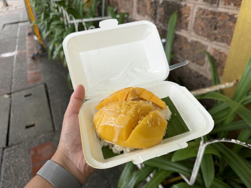老奶奶開的芒果糯米,一份只要 $50 泰銖,芒果還是現切的很新鮮!芒果上有一些炸得金黃的糯米,跟芒果一起吃另有一種口感,喜歡芒果糯米的必須列為清邁必吃。