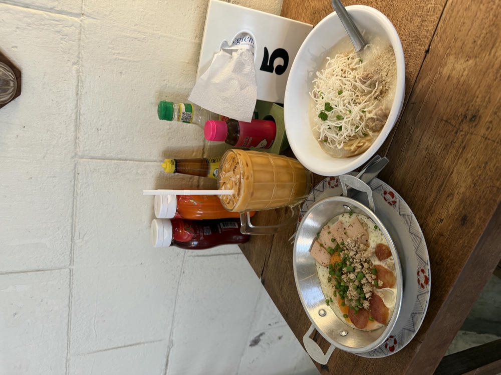 這間剛上面那間賣的內容蠻像的,都是泰式早餐系列(粥、煎蛋、吐司等),裝潢十分可愛,只是屋頂很矮高個子要小心 XD。以粥來說的話我個人覺得這家比較好吃,裡面的豬肉丸更 Q,但其他的部分就各有千秋囉!
