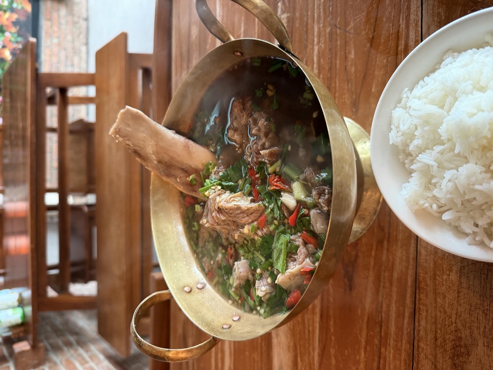 以單純烤雞而言,我覺得是我吃到清邁最好吃的,碳香味很重,就算雞胸也不會太柴,雞肉整體都很好吃!另外我也有點了牛肉湯,料真的超多很划算,湯頭和肉質也都不錯,是清邁美食推薦。