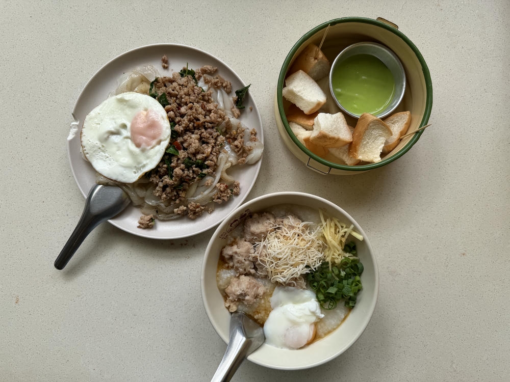 本來以為是網美店但蠻好吃的,有點結合越式+泰式路線,幾乎所有品項都點過一遍沒踩雷,粥和麵算是各有特色,我自己比較喜歡粥因為麵有點勾芡。這裡的四色沾醬吐司是必點,老實說醬的部分我還好(沒感受到太大差異),但烤土司很好吃,外脆內軟又很香,有來的話可以嚐嚐唷。